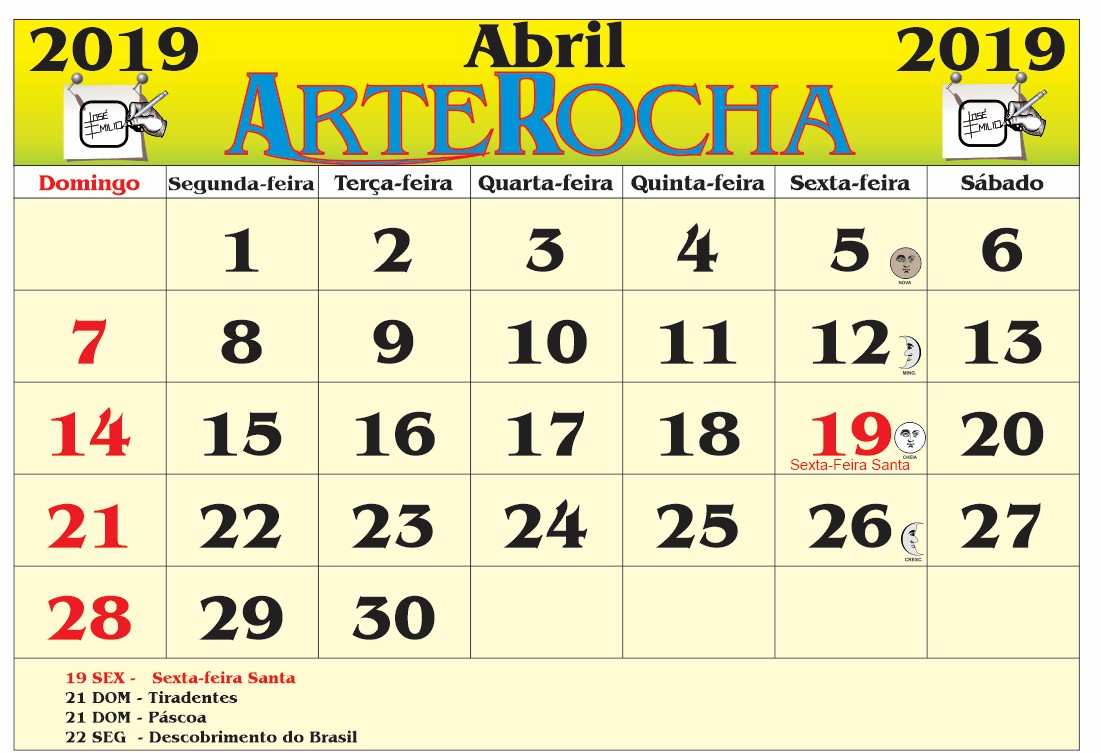 ARTEROCHA CALENDÁRIO MÊS DE ABRIL 2019