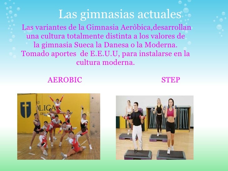 La gimnasia aeróbica es una actividad para personas que quieren quemar energía. Son rutinas realizadas individualmente o en grupos, y unas de las mejores maneras para mejorar su condición.