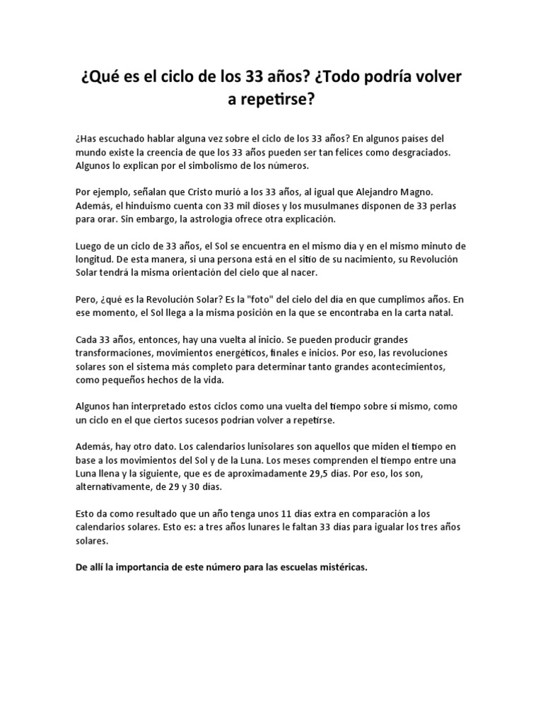 Qué es el ciclo de los 33 años? ¿Todo podría volver a repetirse | PDF. Scribd es red social de lectura y publicación más importante del mundo.