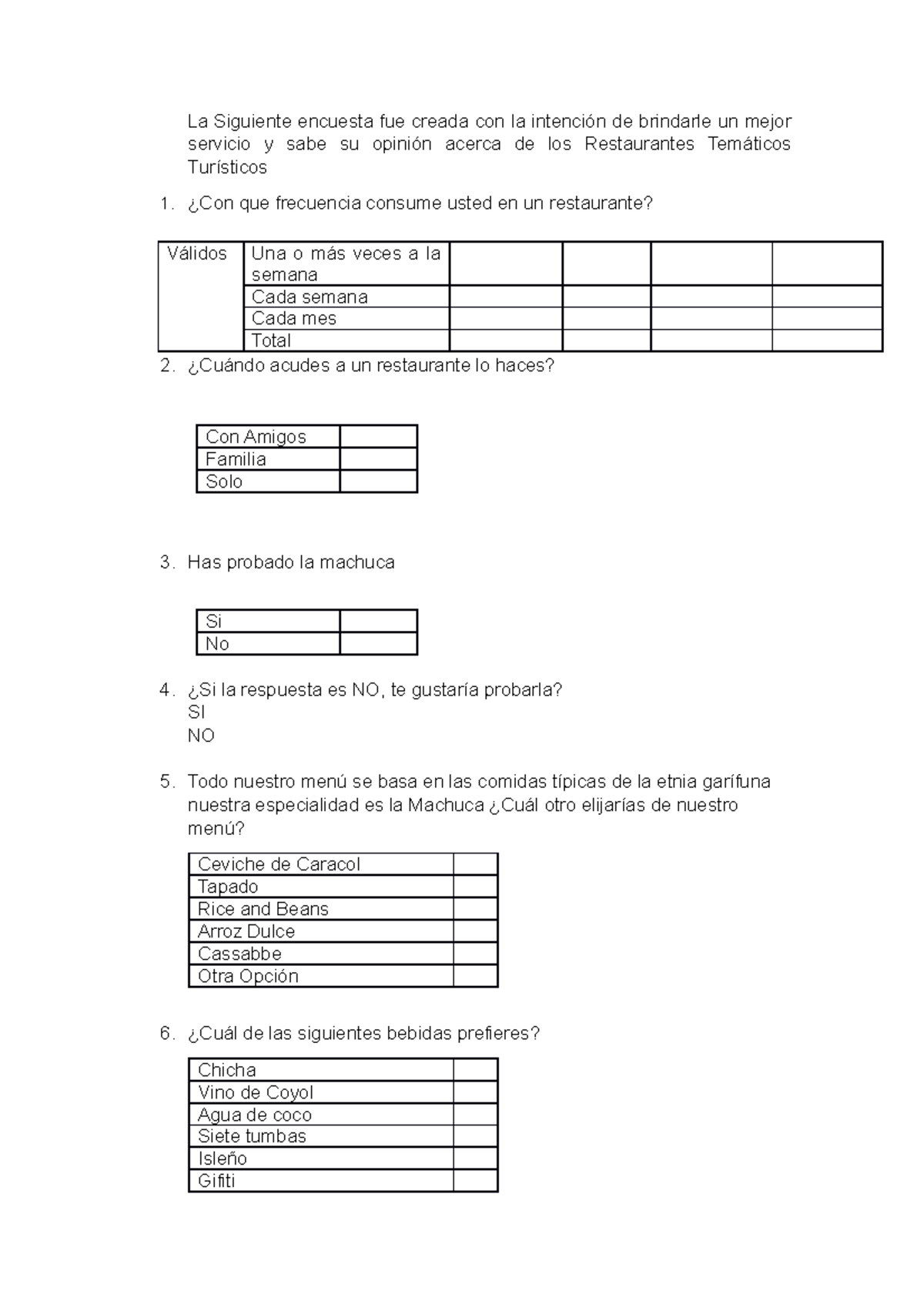 Encuesta a Realizar restaurante tematico Campo Profesional del Trabajo Social UNAH Studocu
