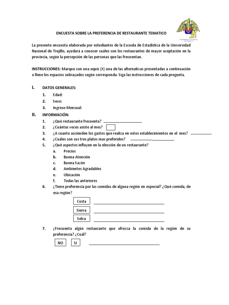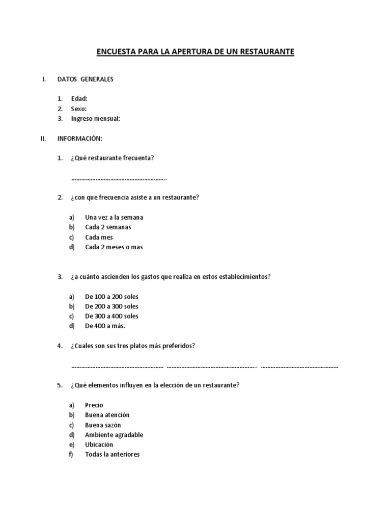Arriba 33+ imagen modelo de encuesta para abrir un restaurante Thcshoanghoathambadinh.edu.vn