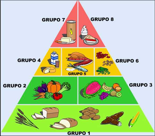 Cada grupo está conformado por: lácteos, proteínas, verduras, frutas, legumbres, frutos secos, cereales, azúcares, aceites y grasas. Se destacan los alimentos más saludables según la rueda o pirámide alimenticia . La ingesta de agua junto a una alimentación balanceada es esencial para el buen funcionamiento del organismo. Los grupos de.