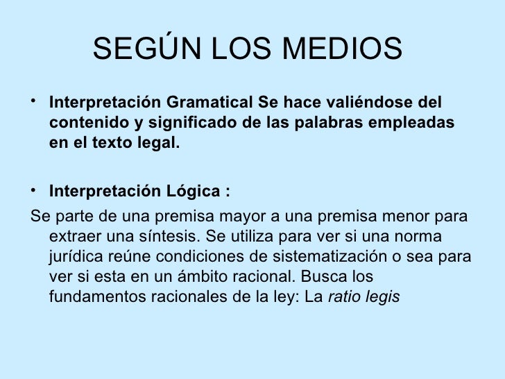 Los métodos de interpretación jurídica pueden ser gramaticales, sistemáticos, históricos, genéticos y teleológicos: Interpretación gramatical o literal: También denominada como interpretación exegética busca encontrar el sentido de una norma a partir de su literalidad. Interpretación sistemática: Busca extraer del texto de la norma.