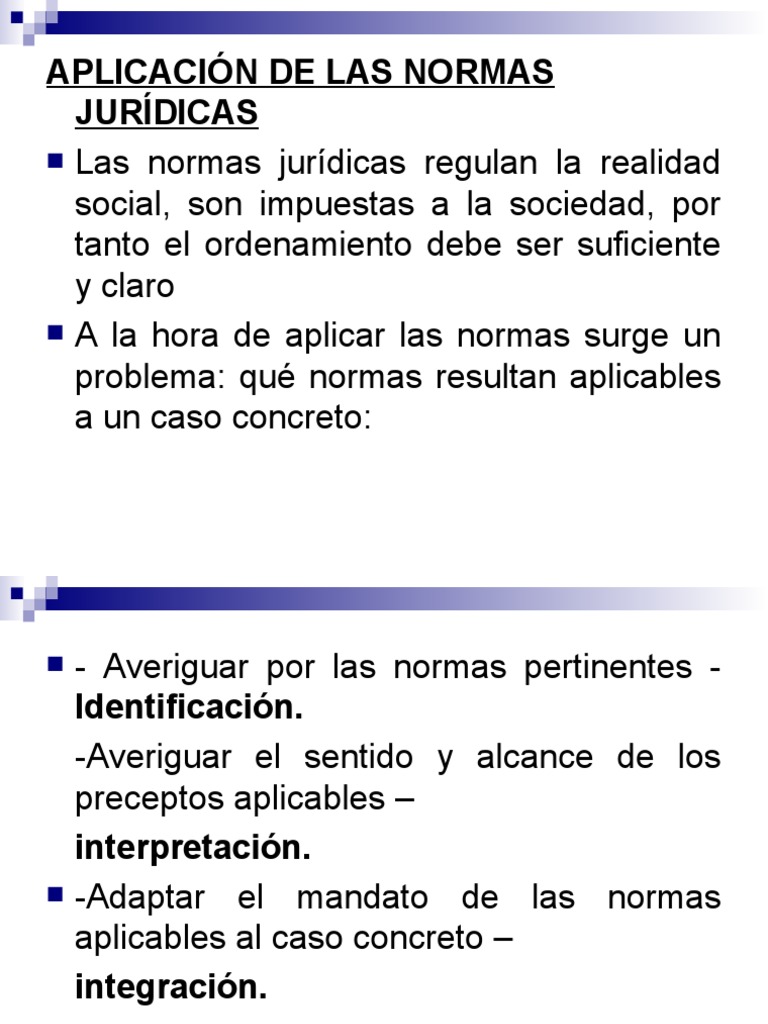 La interpretación de la norma jurídica La de la norma y del derecho. Se dice la actividad de