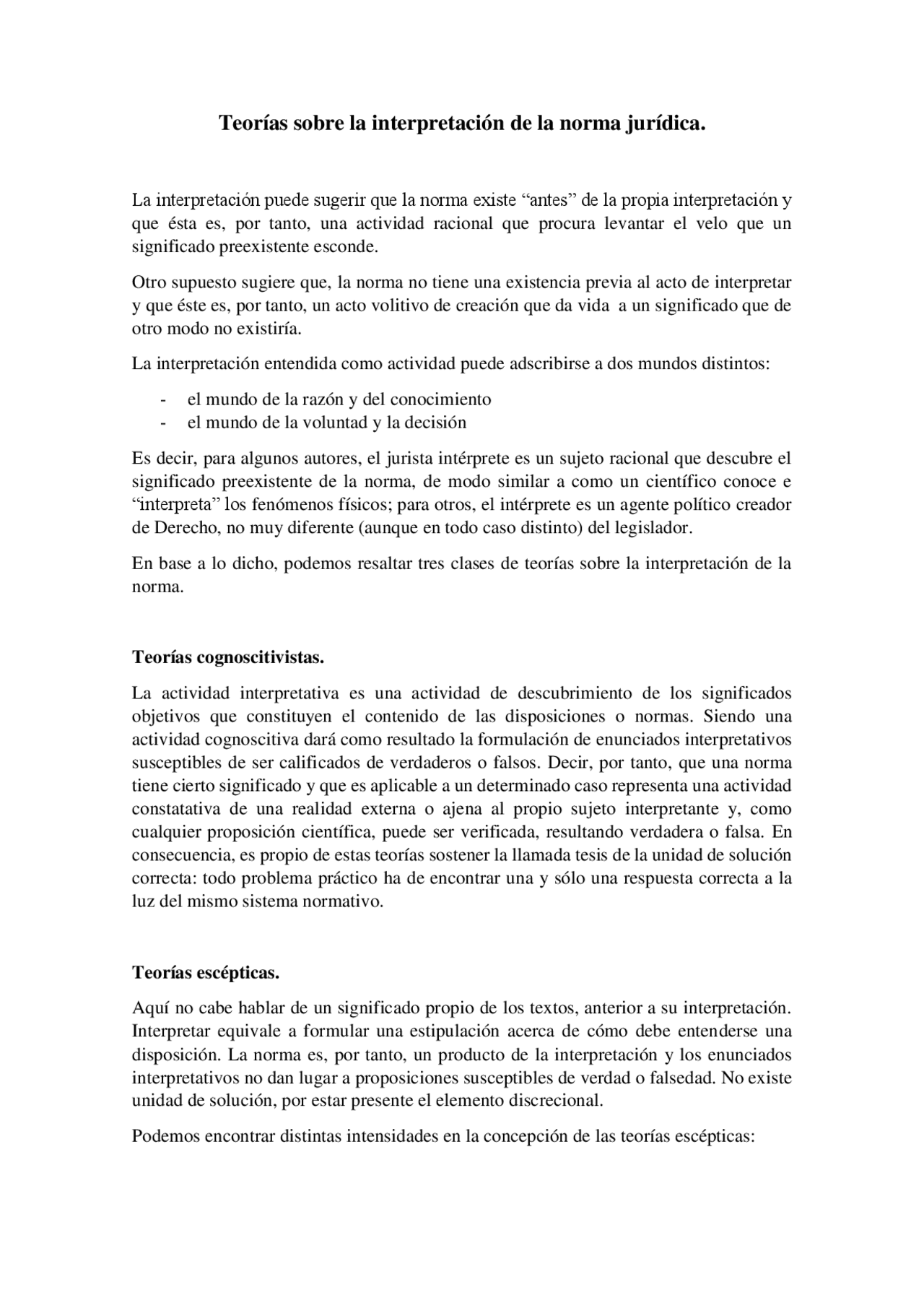 Teorías sobre la interpretación de la norma jurídica. Apuntes de Derecho Civil Docsity