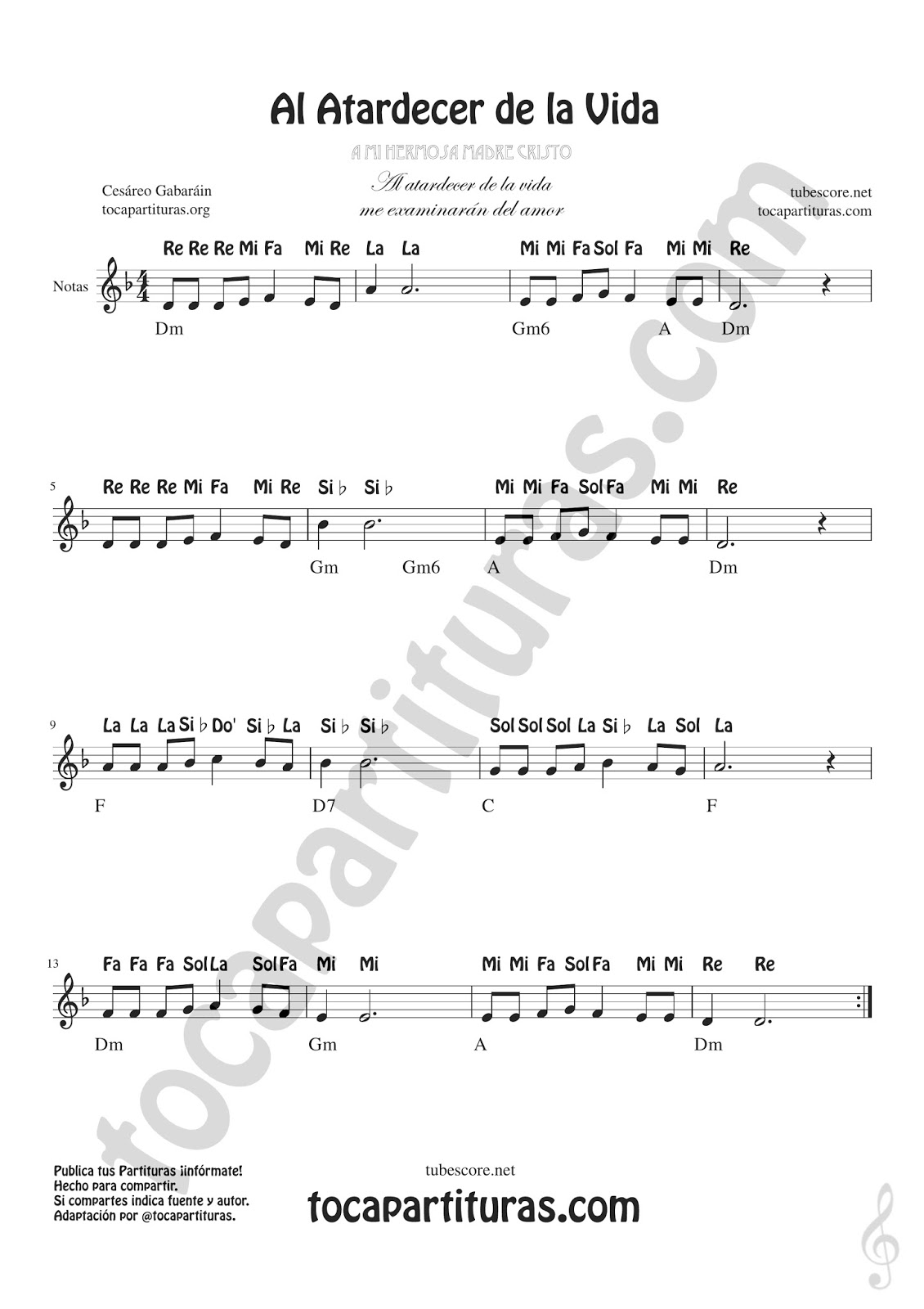 tocapartituras Al Atardecer de la Vida de Cesareo Gabarain Partitura de Flauta, Violín, Saxofón