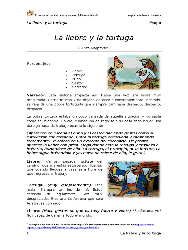 La Liebre y La Tortuga Representación Teatral PDF Tortuga Ocio