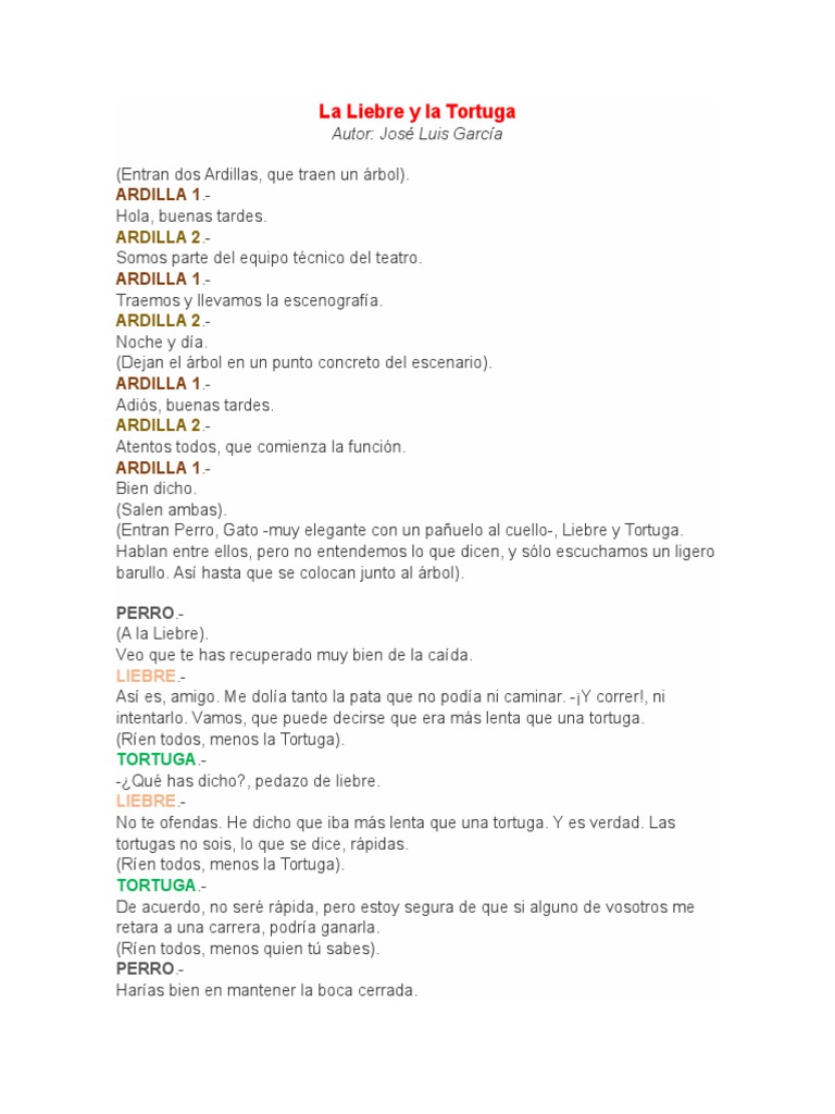 Obra de Teatro La Liebre y la Tortuga Descripción y Representación de una Obra Teatral basada