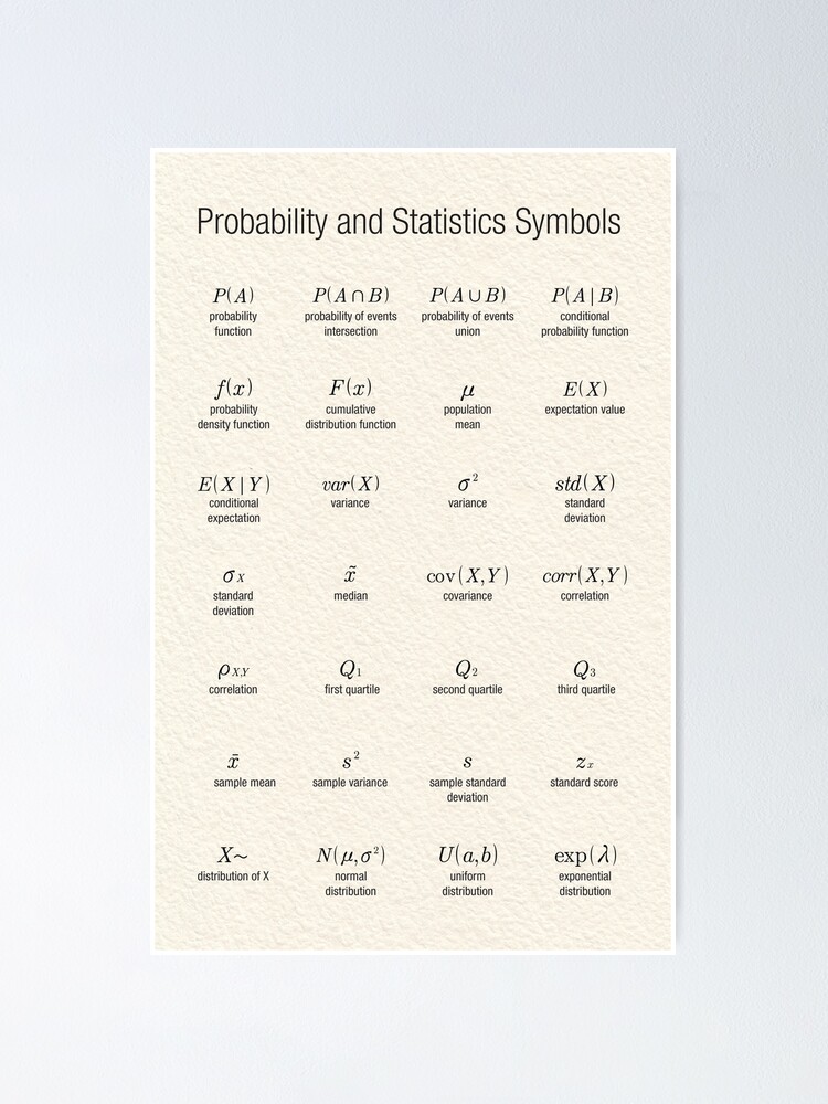 Probability and Statistics Symbols Math Poster Printable Etsy