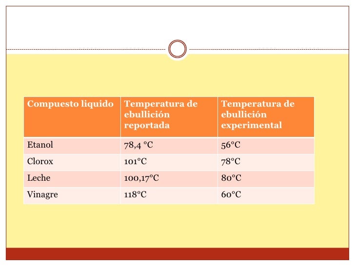 Sin encabezados. El punto de ebullición de un compuesto es la temperatura donde se produce el cambio de fase líquido-gas. En términos más técnicos, es cuando la presión de vapor de un líquido es igual a su presión aplicada (típicamente la presión atmosférica).