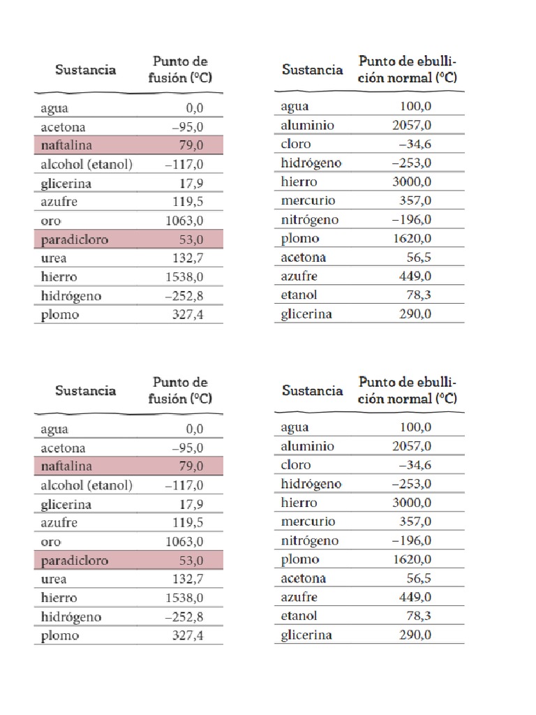 Tabla de Puntos de Fusión y de Ebullición PDF